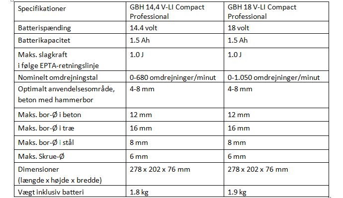 Bosch inddeler hele sit sortiment af professionelle el-værktøjer med 14.4 og 18 volt lithium-ion-batteri i tre serier, hhv. Robust-, Dynamic- og Lightserien, ud fra de forskellige fordele, værktøjerne tilbyder. Og de nye akku-borehamre GBH 14,4 og 18 V- LI Compact hører qua deres størrelse og vægt selvfølgelig til i Lightserien, der netop udmærker sig ved at være utrolige lette og handy værktøjer kombineret med høj ydeevne til professionel brug.