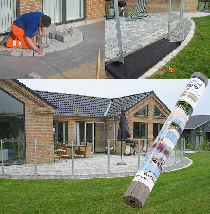 Miljøvenlig Fibertex-dug stabiliserer terrassen og holder myrerne væk
