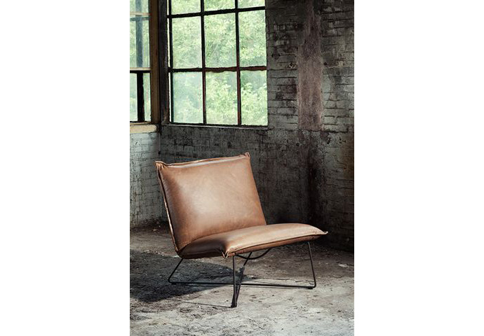 Rå lounge stol i luxor læder med vintage stel. Med stor side komfort. Mål 70x84x8.
