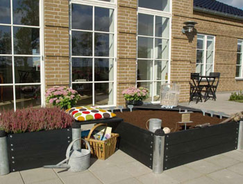 Plus Pipe samler køkkenhaven på et afgrænset område, og det gør den ugentlige lugning overskuelig. Samtidig holder bedene på solens varme stråler, og det er godt for det grønne indhold, som trives med den ekstra varme. Stilles et par bede langs terrassens flisekant, fungerer de som diskret skillelinje, og haven får et ekstra rum.