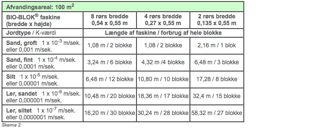 Derefter anvendes dimensioneringsskema for BIO-BLOK® faskiner (se Skema 2).