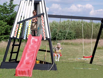 Legestativerne kan fås med rutschebane til stor fornøjelse for de mindste.