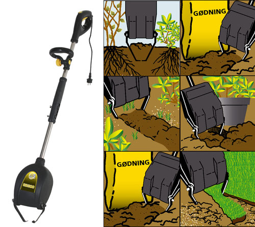 Det automatiske luge og hakkejern klarer nemt lugning, kultivering, gødskning, plantning og kantskæring i køkkenhaven, blomsterbedet, græskanter samt andre steder, hvor pladsen er trang.