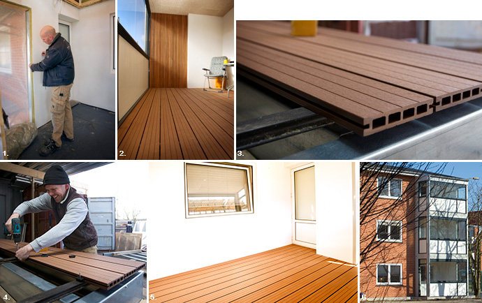 Gulvene får kompositplanker – EasyPlank® by Wimex – som er en miljøvenlig løsning, der repræsenterer den allernyeste teknologi. Opskriften lyder: