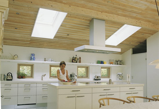 Tømrermester Ole Bertelsen, Skovlunde, havde sat det nye køkken op. Derfor drøftede familien lysproblemerne med ham. Sammen besluttede de at placere to VELUX ovenlysvinduer som skylights i husets loft.