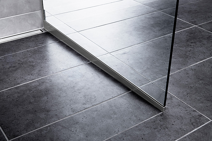 GlassLine er udviklet med en unik teknisk løsning, så brusevæggen leveres monteret i en elegant stålprofil ved gulvet og mod væggen. Flangen fra gulvarmaturet videreføres til glassets rustfri stålprofil, så man sikrer en vandtæt løsning – og på den måde bliver unidrain®s nye serie en naturlig forlængelse af linjeafløbet.