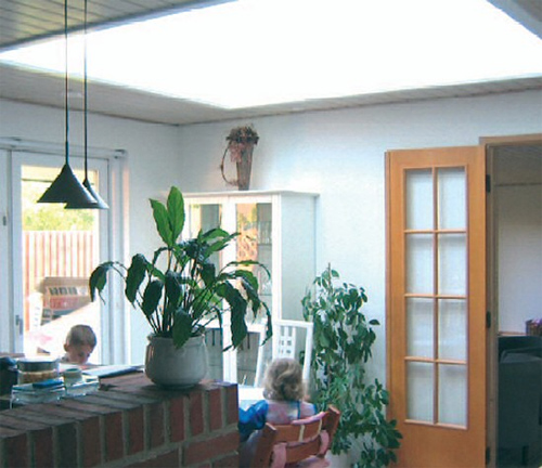 ”Vi valgte at få monteret INTEGRA ovenlysvinduer med fjernbetjening, og vi er simpelthen så glade for, at vi fik gjort noget ved problemet med det mørke køkken. Det tog kun 3 dage for Jesper at montere ovenlys med lysskakt og lystunnel i gangen. Og det selv om vinduerne er centreret over havedøren, så der skulle laves en udveksling i spærene. Nu vælter lyset ned i køkkenet og i stuen, så det er helt anderledes lyst og venligt”, fortæller Denise Lund. Den mørke gang blev klaret med den nye VELUX lystunnel, og for at tilgodese behovet for lys om aftenen, blev der monteret elektrisk lyskit i tunnelen. ”Med lystunnelen i gangen er det ligesom at have gratis lys om dagen – og lyskittet giver godt lys om aftenen. Alt i alt er vi meget glade for løsningen. Vi har fået ”blod på tanden” og overvejernu at bruge ovenlys andre steder i huset”, slutter Denise.
