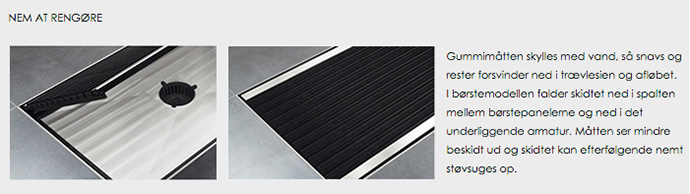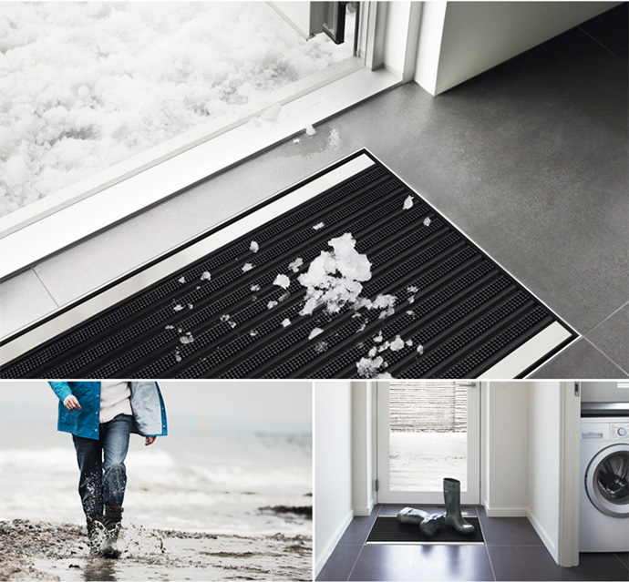 Vælg mellem en praktisk gummibelægning eller en smart børstemodel. MatLine kan placeres i alle hustyper og gulvkonstruktioner med fliser.