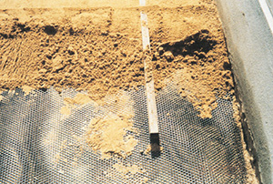 I forbindelse med kørebaner og veje til f.eks. campingvogne eller parkeringspladser på græsarealer udlægges nettet, og græs vil herved være armeret, og det undgås, at bilerne sidder fast, og muld køres op.