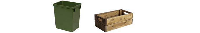 Der findes forskellige typer tilbehør f.eks. store plastspande til affald, eller dekorative trækasser, hvor du kan opbevare småværktøj eller tilbehør til haven.