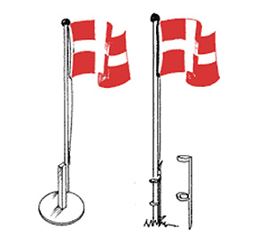 Har du ikke mulighed for at have en flagstang i din have, kan du alligevel få plads til en flagstang. Stilling Flags ministang i træ er 195 cm. høj og hvidmalet med rød knop. Den har en fin hvid sokkel, og den ene type har en tung plade som base, der gør, at den ikke er tilbøjelig til at vælte i blæsevejr, den anden sættes direkte i jorden med et spyd.
