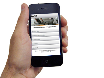 Med en smartphone i hånden kan mureren og andre brugere nu finde det nye Alfix mobilsite på samme adresse som den almindelige hjemmeside.