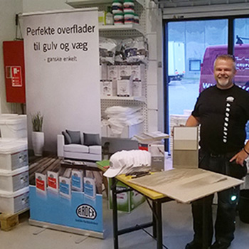 – Vi vender simpelthen bøtten på hovedet: I stedet for kun at fremvise produkterne i butikkerne fokuserer vi på de løsninger, som produkterne skal bruges til. Mock-up-væggene opføres med illustrerende plancher, som skridt for skridt forklarer, dels hvilke produkter der skal anvendes til hvilke løsninger, dels hvordan man konkret skal gøre for at få det bedste resultat, fortæller teknisk konsulent Allan Petersen fra ARDEX.