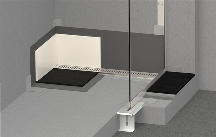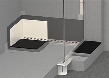 unidrain® var de første til at flytte gulvafløbet ind til væggen og gjorde det dermed muligt at lave ensidet fald. Det koncept er videreudviklet til montering af brusevæggene; flangen fra unidrain®s gulvarmatur videreføres på både det faste og fleksible modul og på brusevæggenes stålprofil og sikrer dermed en vandtæt løsning.
