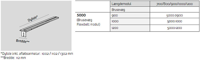 Det fleksible modul passer til brusevægge med dybde 900/1000/1200 mm og til brusenicher i bredderne 700/800/900/1000/1200 mm og kan kobles på eksisterende armaturer 1002/1003/1004.