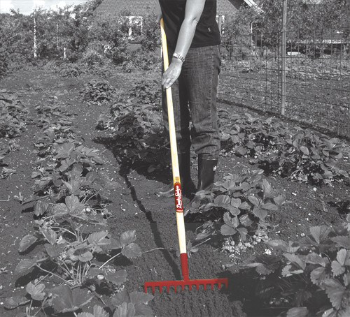 Plæneriven har lange, bløde tænder, som baner sig vej gennem græsstråene uden at beskadi-ge dem eller hive de grønne stængler op af jorden. Et bredt hoved på cirka 40 centimeter og et langt skaft på mere end halvanden meter sikrer, at et større område af plænen kan rives på en gang. På den måde kan haveejeren hurtigt komme videre til andre opgaver.