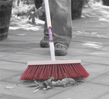 Et oplagt sted at starte havearbejdet er på fliser og fortove foran huset. Visne blade, døde grene, jord og mudder ligger ofte som et lag oven på stenene, og det er nu tid til at befri dem for det tyngende tæppe.