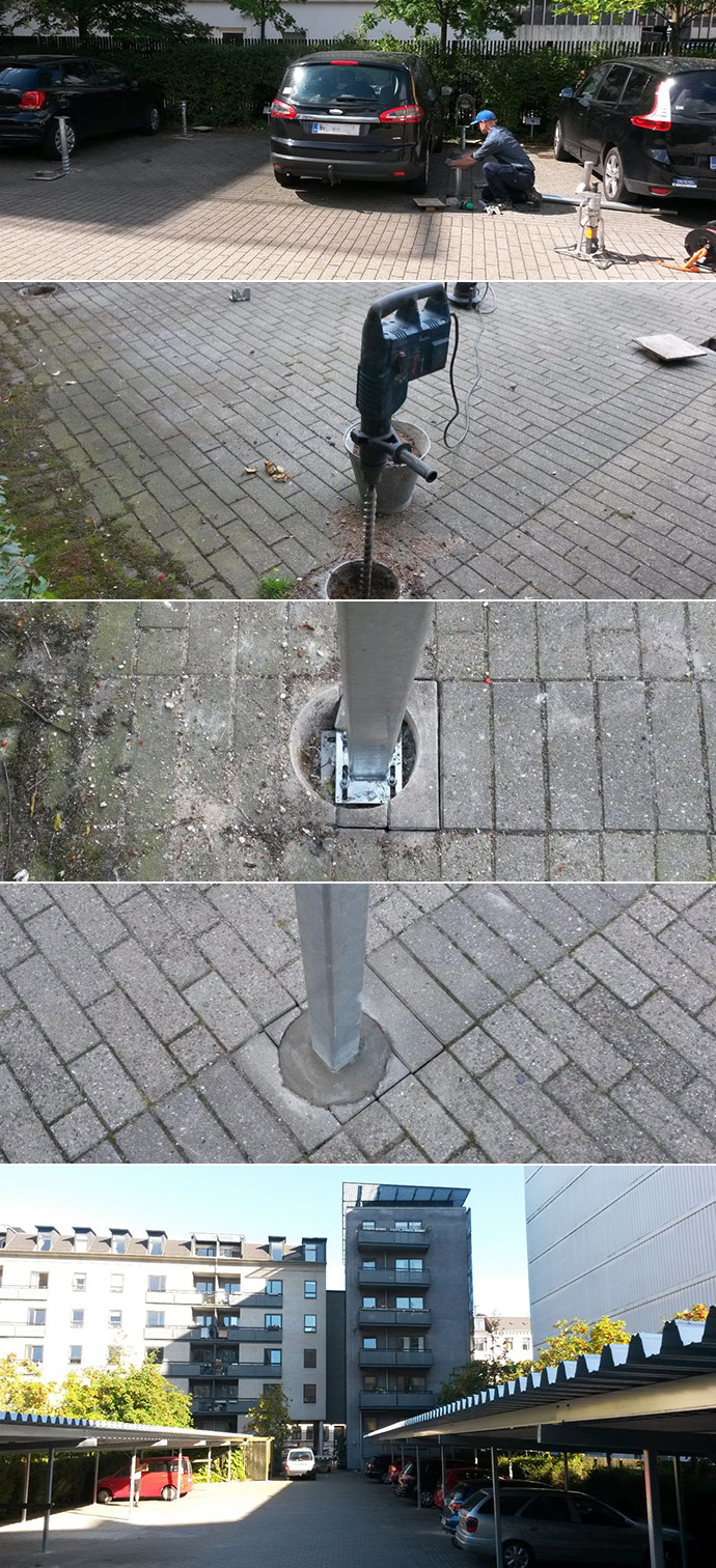 De overdækkede P-pladser blev færdige en uge førend planlagt – og ud over at være hurtigt at montere, er skruefundamentet også både billigere og mindre pladskrævende end alternative løsninger.