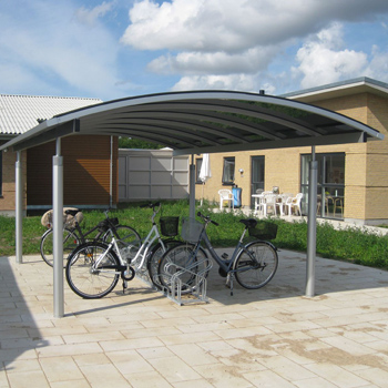 BASES cykelskuret, der er flot og stilrent, kan opføres særskilt eller i forbindelse med BASES carporte eller terrasseoverdækninger.