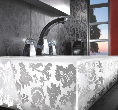 ”Vores dekorerede badeværelseselementer fra Memento New Glory serien med mønstrede overflader og dekorative detaljer viser den elegance, der kan bruges til at skabe et stilistisk, harmonisk og individualistisk design på badeværelset sammen med f.eks. en vandhane i ægte krystal. Med så mange specielle detaljer er det næsten nødvendigt også at have nogle enkle og minimalistiske elementer. Et eksempel på det er de nye sorte og hvide højglansprodukter i den populære Central Line møbelserie.”