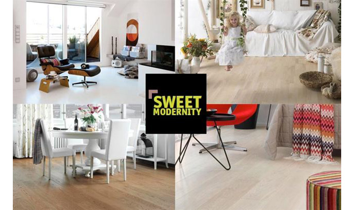 Sweet Modernity kendetegnes ved det stilrene, moderne og naturlige, med en varm følelse. Farveskalaen udgør bløde pasteller og hele udtrykket udstråler velvære og sundhed. Økologi og holdbarhed er vigtige værdier i denne trend. Nogle eksempler på trægulv er: Epoque Eg Cotton White, Epoque Eg Praline og Epoque Eg Pearl.