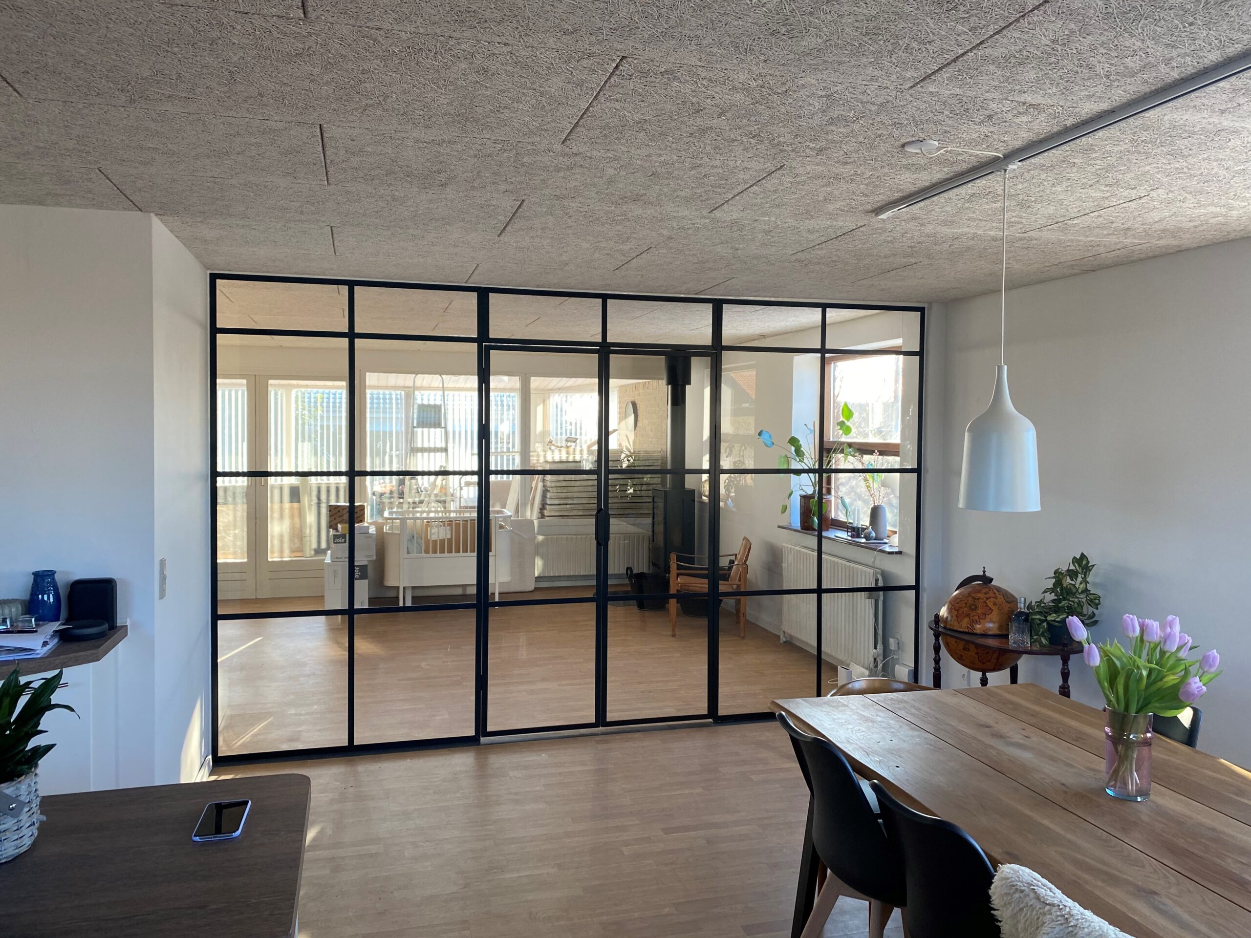 Det er nemt at opdele rum med en New Yorker væg. Står du og mangler et ekstra værelse eller et kontor i din stue, er en New Yorker væg et oplagt og elegant valg. Laver du et knæk på 90 grader, får du hurtigt skabt et nyt rum. Du kan med en New Yorker væg forlænge levetiden for din nuværende bolig med et ekstra rum – og kan udsætte en eventuel flytning. Du bestemmer selv størrelsen på felterne i væggen, og hvor mange sprosser du vil have i. På den måde kan du få netop det udtryk, der passer til dit hjem, kontor, restaurant osv.
