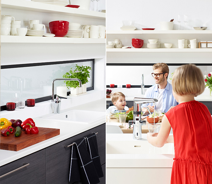 Alle Oras’ smart armaturer er designede til at gøre dagligdagen nemmere. Håndtagene på vandhanerne er lavet af easy-grip materiale og skabt med afrundede former, der holder håndtagene rene, fordi vandet løber af.