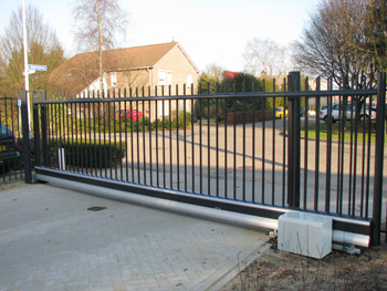 Som standard leveres skydeporten med portautomatik samt sikkerhedsudstyr i henhold til gældende regler – eksempelvis nødstop, sikkerhedslister og udtag for kortlæser. Den automatiske version er med åbningsbredder 250 til 500 cm og højderne 200 og 250 cm. Hanekam medfølger. Selve udfyldningen er runde balustre i aluminium. Og så er den i øvrigt certificeret i henhold til NEN-EN 13241-1.