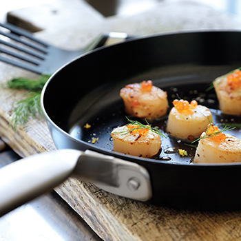 Raadvad Rotissér i aluminium fås nu med den særlige varmeabsorberende bund, Energy Base, så panden hurtigere når den rette temperatur.