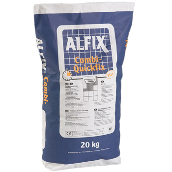 Rester af Alfix CombiQuickfix på fliser og værktøj fjernes med vand inden afbinding.