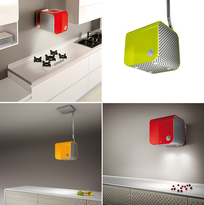 Den nye, kubeformede emhætte på blot 35 x 35 x 35 cm vender op og ned på alt, hvad man er vant til at se i et køkken. Den usædvanlige form er skabt ved at sætte to U-formede skaller sammen. Den ene har en markant farve, mens den anden er af stål – og har den vigtige funktion at give emhætten det 3-sidede udsugningssystem, som både er unikt og overraskende effektivt.