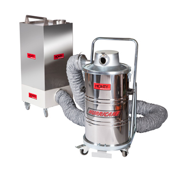 Støvsugeren fra andersen & nielsen har en forseparator, hvor større stykker PCB-inficeret byggeaffald havner. Resten af støvet sætter sig i et filtersæt, der dog ikke kan dæmme op for PCB-dampene. De skal i stedet fanges af filtre med aktivt kul, og den proces foregår i den tilhørende kulvogn. Når luften er renset med kul, ledes den ud igen.