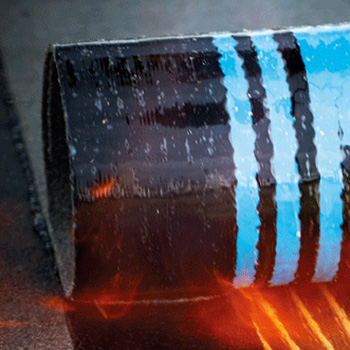 Målet har også været at udvikle en tagpapløsning, som kan monteres hurtigere end almindelige produkter – og dermed give et lavere ressourceforbrug til arbejdsløn og gas. De smalle Powertherm-striber med riller, kun dækket af en meget tynd plastfilm, brænder hurtigere væk og klæber hurtigere til underlaget end andre af Icopals produkter.