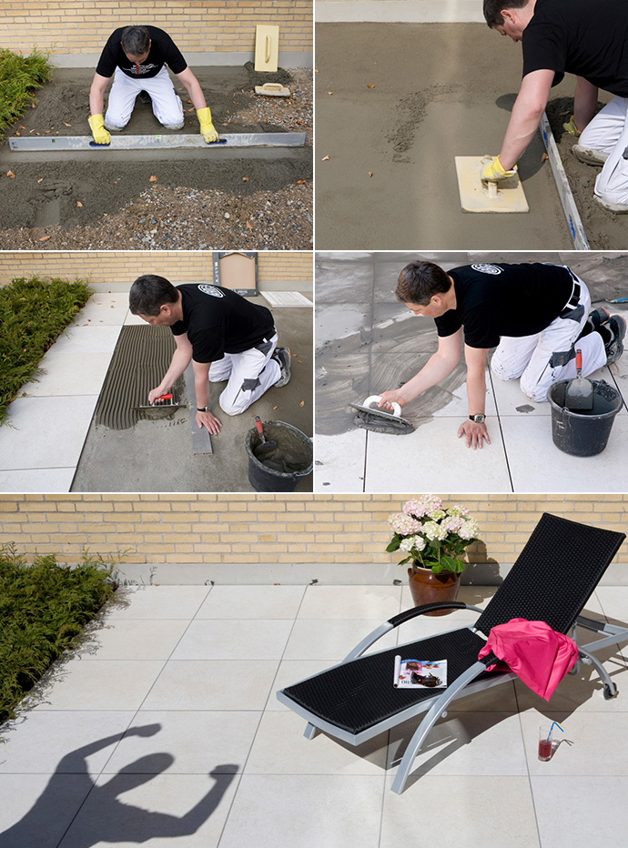 ”A 38 MIX cementen udmærker sig desuden ved, at alle krympninger er væk inden for 24 timer, og de største allerede efter 2-3 timer. Det betyder, at mureren kan støbe slidlaget om morgenen, lægge fliser på efter frokost – og om aftenen kan man så i princippet have gæster på besøg på sin flotte, nye terrasse,” pointerer Mikkel Falkenstrøm.