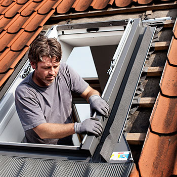 Den nye VELUX udskiftningsinddækning kan anvendes, når ældre ovenlysvinduer skal udskiftes og etableres med den samme indbygningshøjde, som de øvrige ovenlysvinduer i tagfladen.
