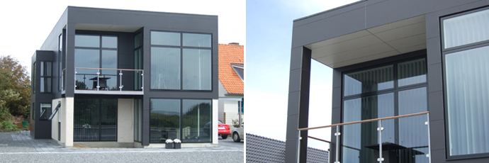 Tidsmæssigt peger farverne både fremad og bagud, så fibercementpladen er ligeså velegnet som facadebeklædning i et nyt moderne byggeri som til restaurering af facader i den ældre bygningsmasse.