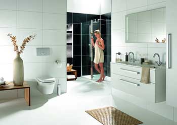 Den MK – godkendte, indbygget vådrumsmembran og Aqua Lock – låsesystemet sikrer at den glatte og stærke overflade tåler både direkte vandsprøjt, og store temperatursvingninger.