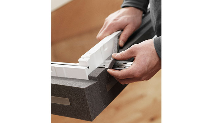 Det indeholder alt, hvad håndværkeren skal bruge for at få en sikker og lun indbygning: Karmisolering, undertagskrave og afvandingsrende.
