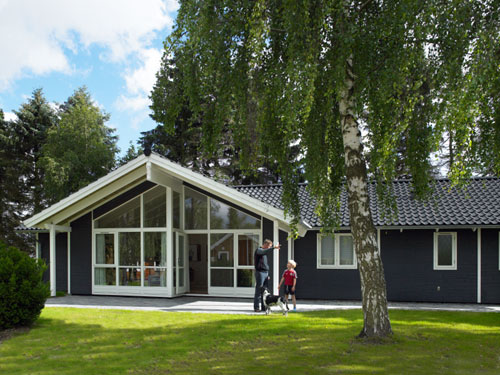 Husene kan derudover, mod merpris, leveres med lofter til kip i stuen og vores karakteristiske vinduesparti i stuen, og kan naturligvis også bygges med murede facader.