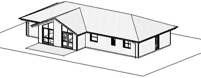 Her ser du et alternativ til stuens facade, der mod tillæg, kan leveres med spidsgavl, trekantvinduer og hvor stuens lofter vil være til kip.