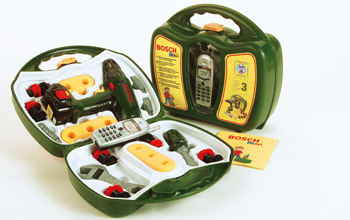 Bosch giver nu børnene deres helt egen værktøjskasse, så de kan hjælpe deres mor eller far, når der skal bygges eller repareres i hjemmet. Bosch Mini er nøjagtige kopier af Bosch’ populære el-værktøjer og består bl.a. af bore- og skruemaskiner, rundsav og andet nyttigt til værktøjskassen. Alt legetøjet har autentiske lyde, som dog ikke lyder helt så højt som de ”voksne” modeller, og med legetøjet følger diverse bor og skruer, som enhver lille handyman har brug for.