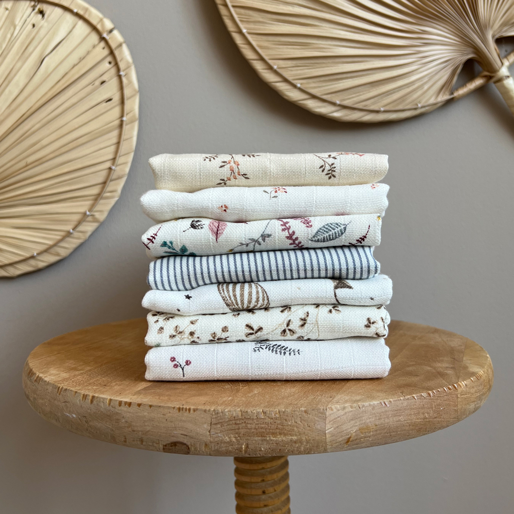 Stofbleerne har fire lag muslin, hvilket gør dem super bløde og slidstærke. Endvidere er de økologiske bomuldsfibre ekstra lange, hvilket gør tekstilet blødere.