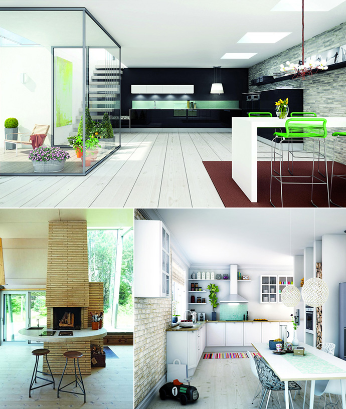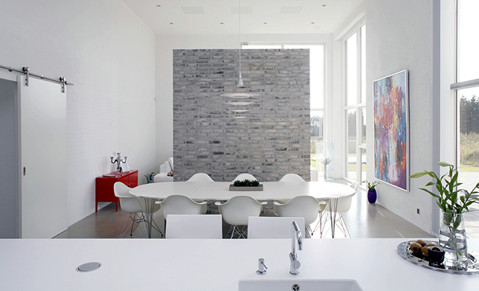 Køkken-alrummet er det mest benyttede rum i familien, og derfor er det vigtigt med en behagelig konstant temperatur og et sundt indeklima. Tommy Bisgaard forklarer, at murstensvægge i køkkenet optager og afgiver fugt, så der altid er et sundt indeklima, hvilket ofte kan være et problem i et køkken. Ved at lægge et gulv af sten, sikrer man sig også et behageligt indeklima. Tilmed egner gulvvarme sig rigtig godt til stenene, da stenene holder på varmen i længere tid, så det er mere energi-effektivt. Det murede gulv er meget slidstærkt, og hvis gulvet er behandlet, kan rødvinspletter og kaffepletter hurtigt tørres op, uden at efterlade mærker. Teglstenene skaber et mere personligt køkken, og ved at kombinere de rå mursten med hjemmets øvrige møbler, uanset om det er træmøbler eller hightech – stålmøbler, er der således masser af muligheder for at få en indretning med mere kant og personlighed.