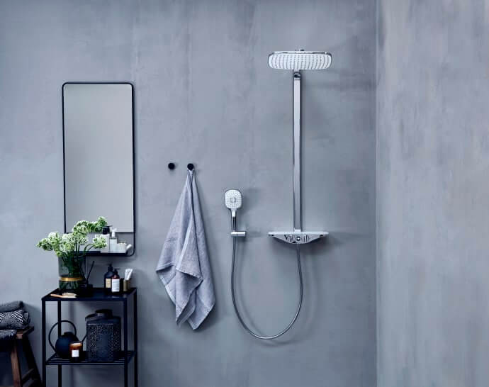 Oras Esteta Wellfit brusesystem er elegant designet med et stort brusehoved, der simulerer blid og naturlig regn og sikrer den ultimative bruseoplevelse. Brusehovedet har en integreret glashylde, der er perfekt til opbevaring af produkter. Glashylden fås i to farver; hvid og grå. Til armaturet hører også en Oras’ Hydractiva håndbruser. Håndbruseren har tre indstillinger; Sensitiv, Intens og Puls, der garanterer at brugeren får en hel personlige bruseroplevelse.