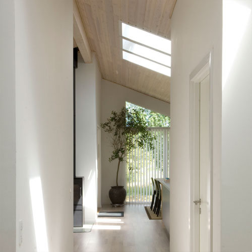 Derudover foreslog VELUX, at også boligens entré blev udstyret med et ovenlysvindue. Entréen er det første sted, som både husets ejere og gæster oplever – og derfor er det vigtigt, at man også her mødes med masser af dagslys. Samtidig skaber ovenlysvinduet i entréen spændende lysvirkninger og kontraster, der præger hele boligen. Og ovenlysvinduet i entréen har gjort en stor forskel, som Lars Gejlager og Jan Brodde ikke selv kunne have forudset. Husets gæster bemærker ofte hvor lyst og behageligt, det er at komme på besøg – og hvor velkommen, de føler sig i det nye sommerhus på Orø.