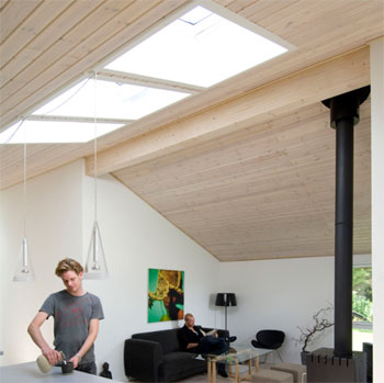 – Der er ingen tvivl om, at ovenlysvinduerne gør sommerhuset helt perfekt. Da vi fik lagt tag på huset, så dækkede de hullerne til ovenlysvinduerne, og her kunne vi ved selvsyn opleve, hvordan sommerhuset ville have været uden de ekstra vinduer. Det var en kæmpe forskel – og det er egentligt et tilfælde, at vi så, hvor stor forskellen egentlig er. Så vi er rigtig glade for, at vi på forhånd fik tænkt en dagslysløsning ind i vores nye sommerhus, fortæller Lars Gejlager.