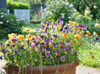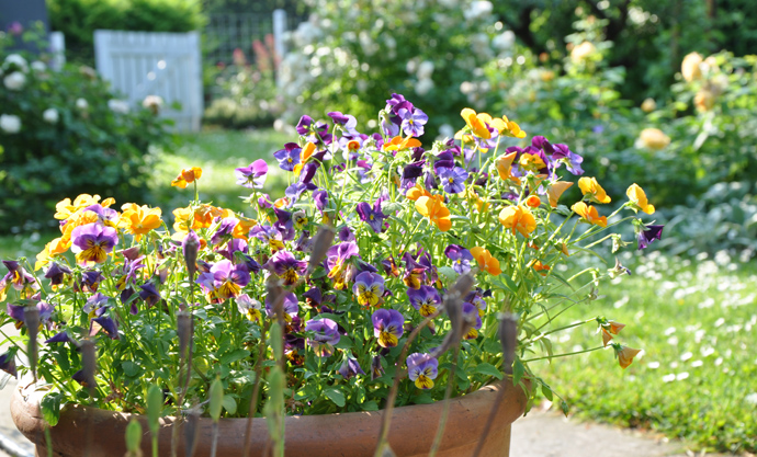 Selvom hornvioler ofte sælges som sommerblomster, er de egentlig to-årige planter eller kortlivede stauder. Du kan få glæde af dine hornvioler igen til næste forår ved at plante dem ud i et bed, når krukkernes indhold skal erstattes af egentlige sommerblomster.