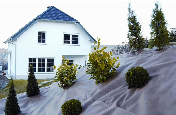 Skal du etablere en lydvold i haven eller ønsker at skærme af for vind eller nysgerrige øjne er Plantex Gold den optimale ukrudts- og erosionsdug til skråninger med beplantning. Den adskiller sig væsentlig som udkrudts- og erosionsdug ved at den ikke kræver afdækningsmateriale som flis eller lignende.