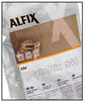 Alfix har netop udviklet en ny stærk bassin- og betonopretningspuds og støbemasse – Alfix PlaneMix S40. S´et i navnet angiver, at produktet er standfast og kan bruges til både opretning på væg og afretning på gulv.