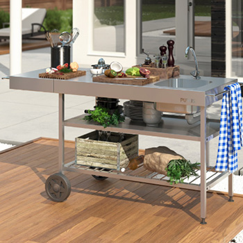 Allerede i det tidlige forår når solen begynder at give de første lune stråler, kripler det i kroppen for at komme ud i det fri. Rigtig mange har fået sig et udekøkken og nyder at laven maden i det fri med urter, krydderier, salat og frugter fra egen have. Hvis du også drømmer om et udekøkken til sommer eller trænger til et nyt, så kik lige på PURUS lækre rustfrie bord med vask. Det er fremstillet af en kraftig 1,25 mm børstet rustfrit stål, en robust og stabil supplement til din havegrill.